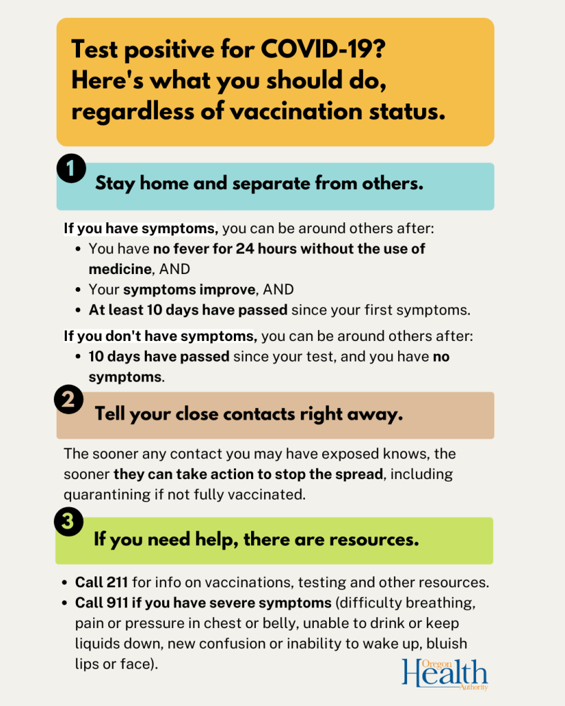 Since Oregon is currently experiencing a large number of COVID-19 cases, it is straining case investigation and contact tracing resources. This means you may not receive a phone call from your health department after you test positive.